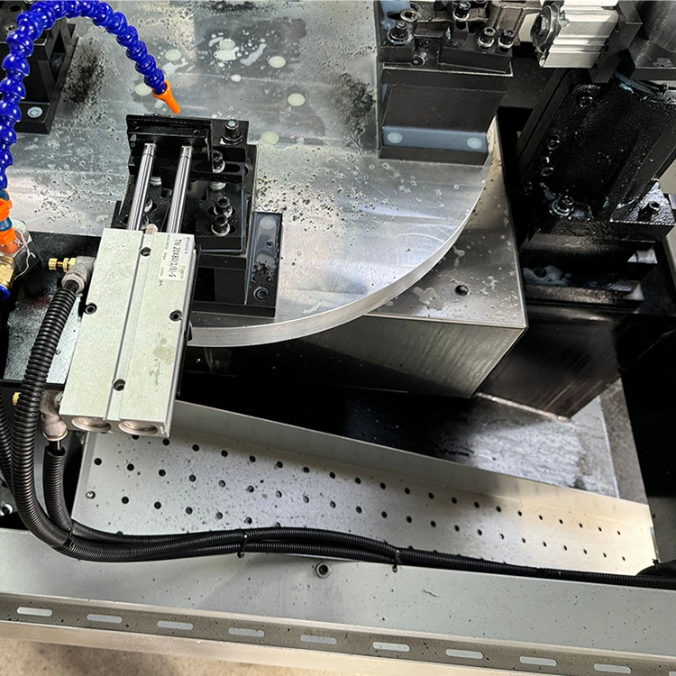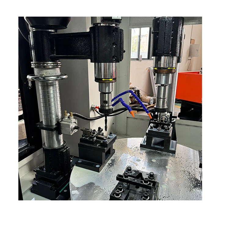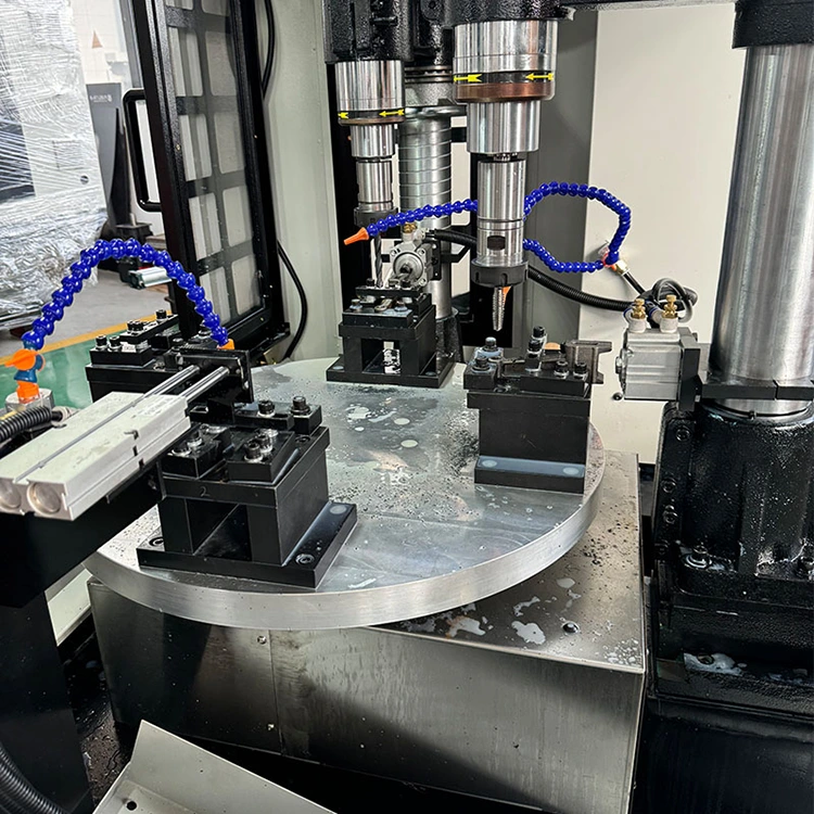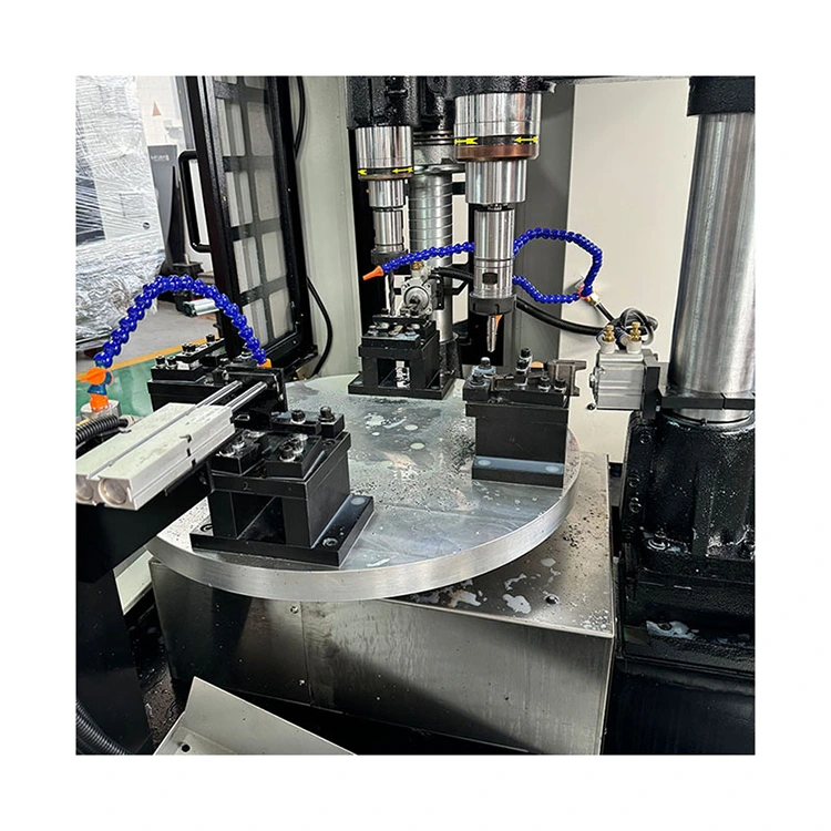 ফোর-অক্ষ CNC টার্নটেবল যৌগ হল একটি বুদ্ধিমান ওয়ার্কস্টেশন যা মিলিং, ড্রিলিং, ট্যাপিং এবং অন্যান্য প্রক্রিয়াগুলিকে একীভূত করে। কোরটি একটি ঘূর্ণমান টেবিল যা একটি চার-অক্ষের CNC সিস্টেম এবং চারটি মেশিনিং স্পিন্ডল দিয়ে সজ্জিত। এর মানে হল যে চারটি ভিন্ন ওয়ার্কপিস একযোগে বা ক্রমানুসারে প্রক্রিয়া করা যেতে পারে, এবং একাধিক প্রক্রিয়া বা অংশ এক চক্রে সম্পন্ন করা যেতে পারে, ক্ল্যাম্পিংয়ের সময় এবং অপেক্ষার সময়কে ব্যাপকভাবে হ্রাস করে।